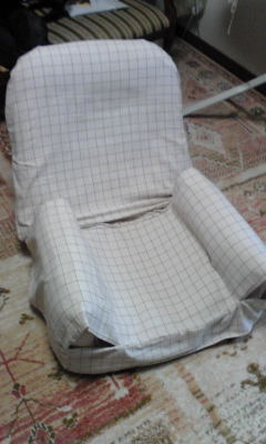 今は座椅子カバーを製作中。手すりのある形状なのでちょっと面倒。